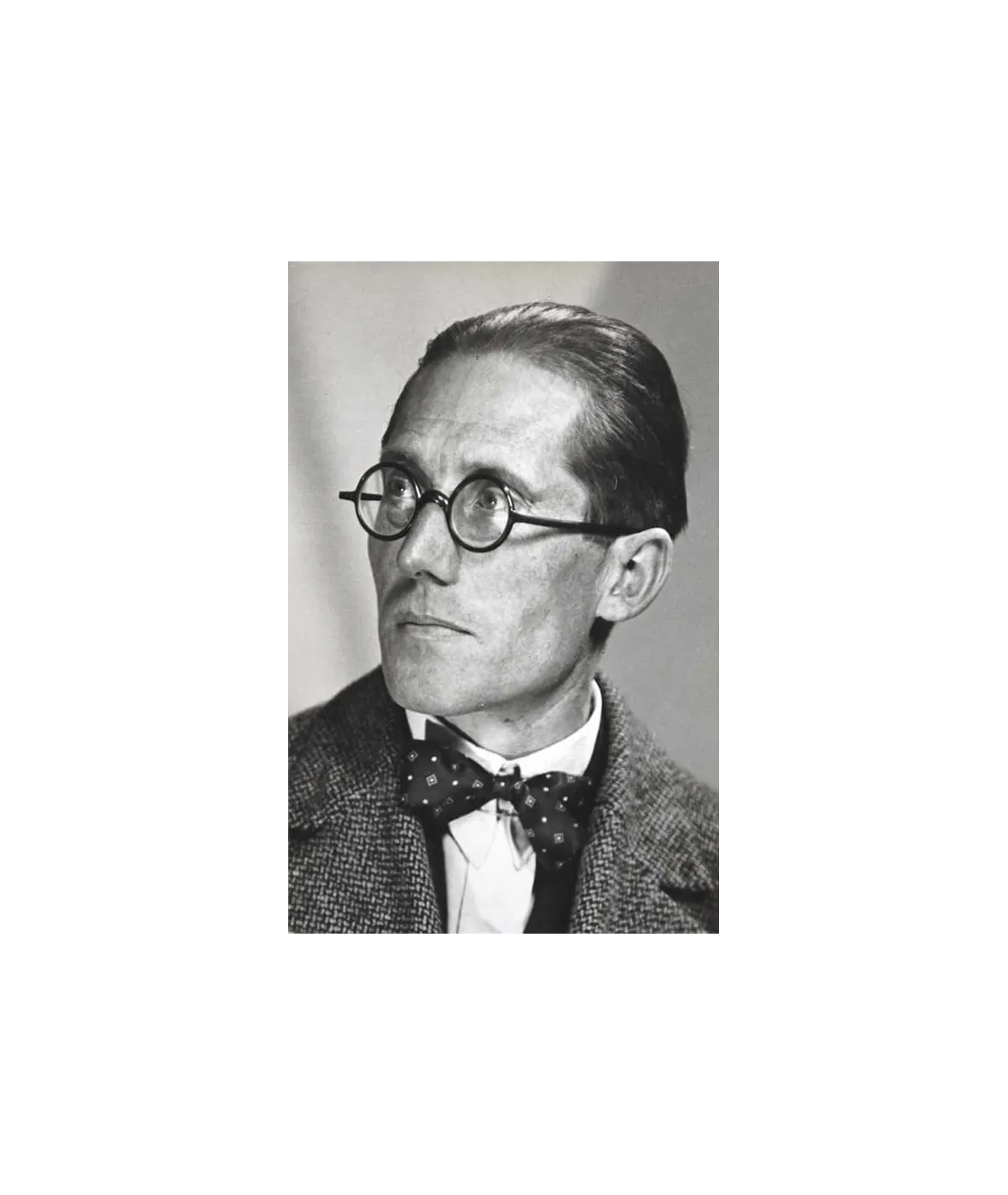 man portrait le Corbusier from side face close up plan on his faceglasses bow-tie short hair