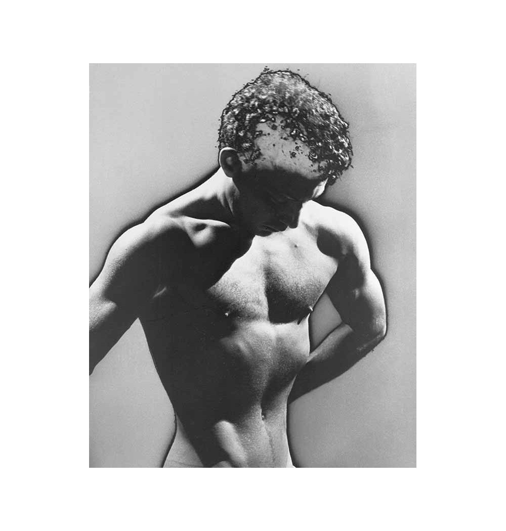 nude man head down solarization half-length shot