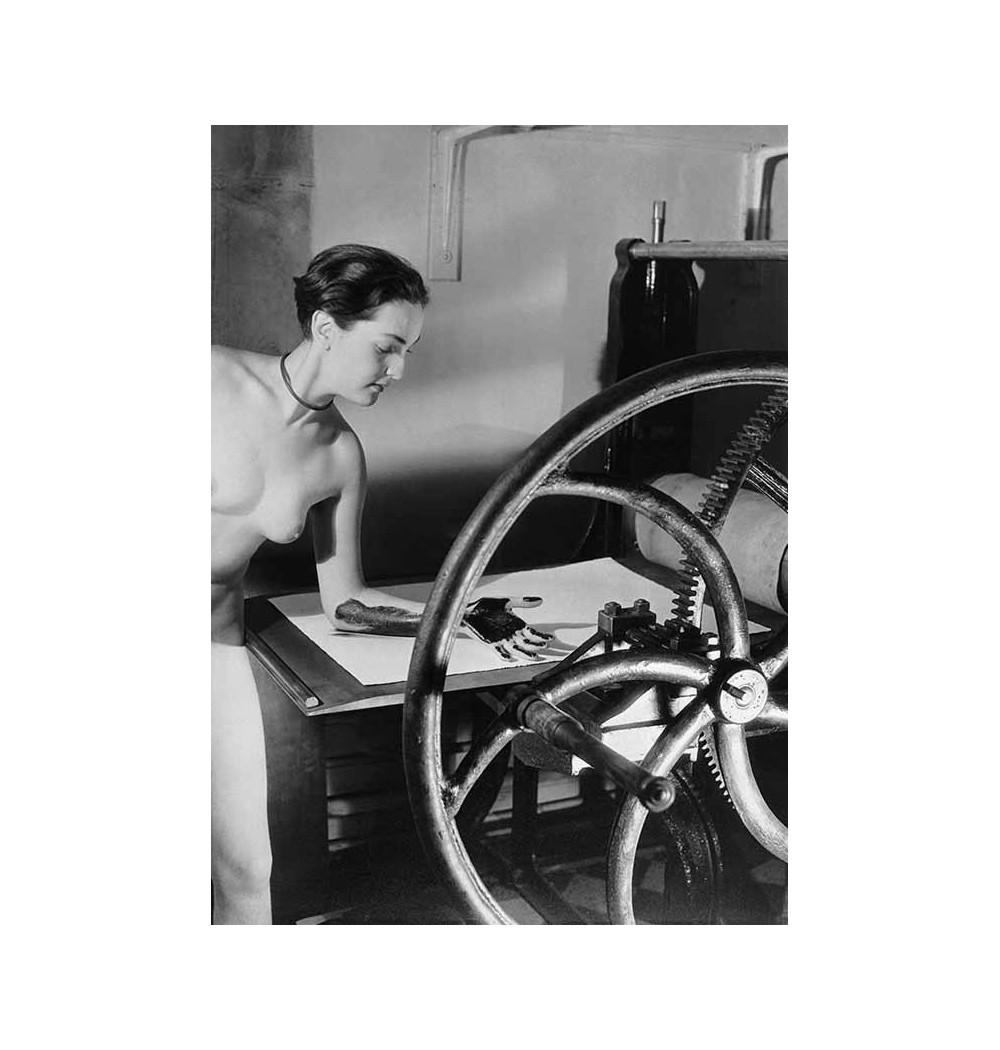 nude woman press ink black hand on white paper Erotique voilée serie - Veiled Erotic serie