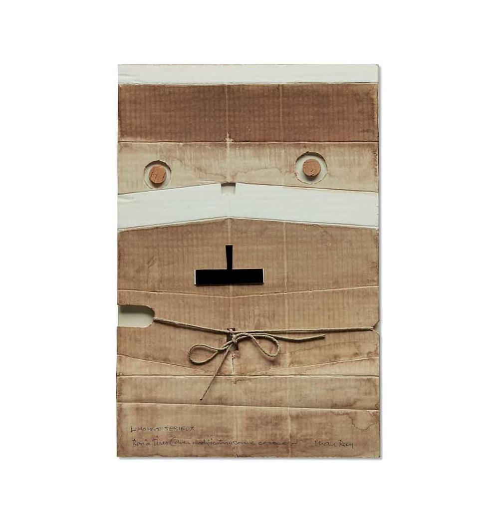 collage, cork, string and varnish on cardboard mounted on cardboard