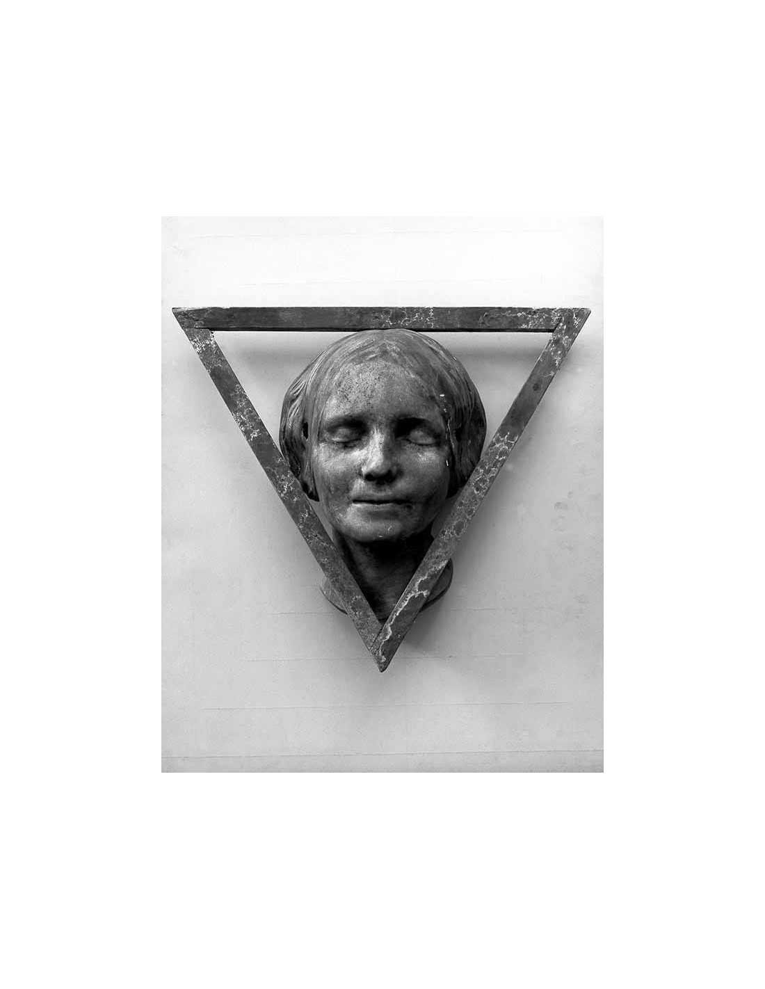 this plaster cast represents the head of a young woman found drowned in the Seine, subject of drawing for Fine Arts students