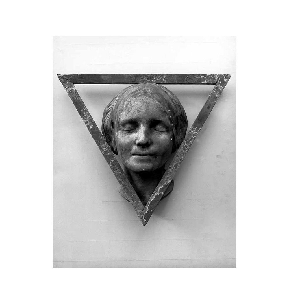 this plaster cast represents the head of a young woman found drowned in the Seine, subject of drawing for Fine Arts students