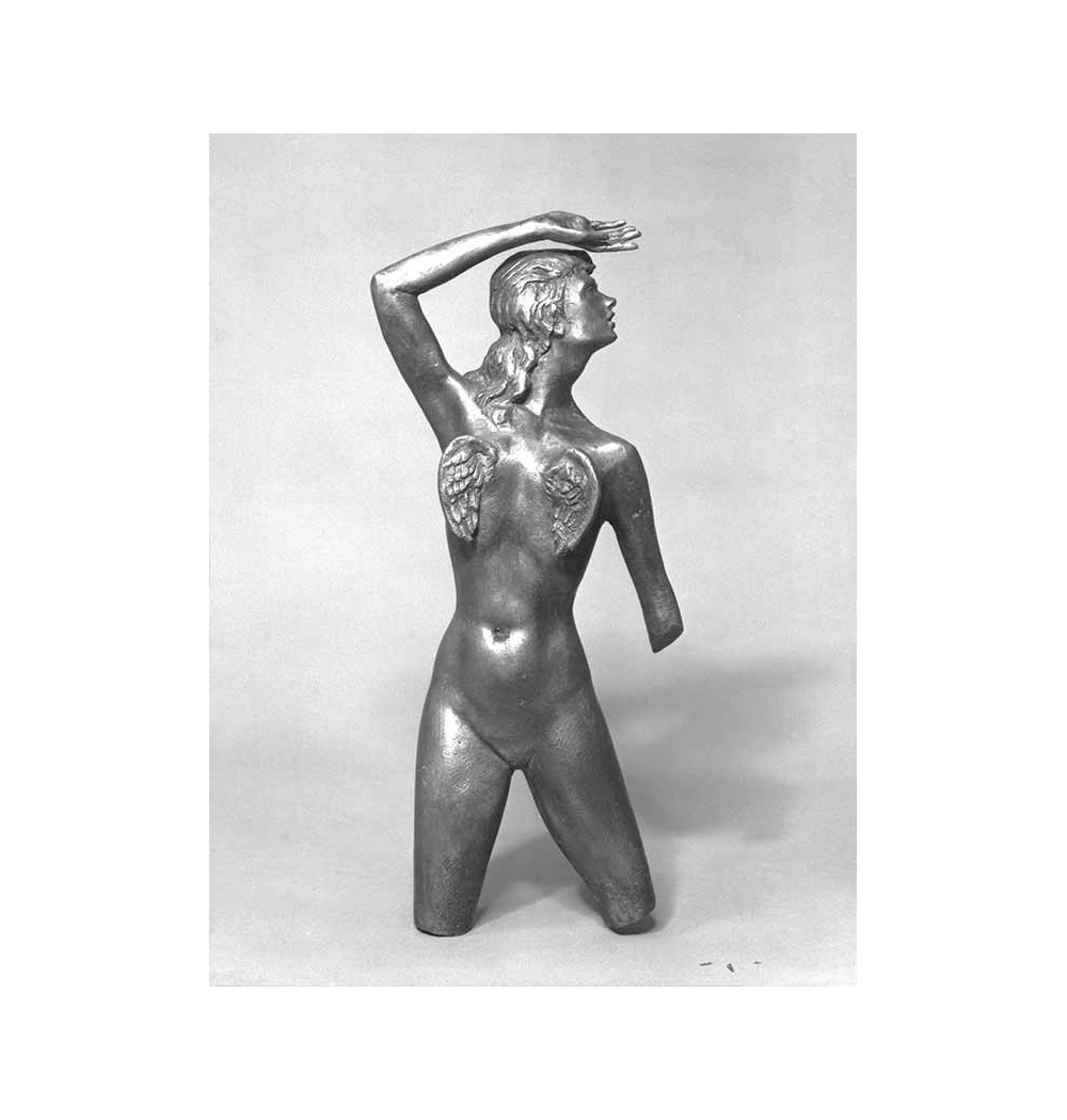bronze body nude woman with wings on the chest hand over the head work from a drawing in Les Mains Libres