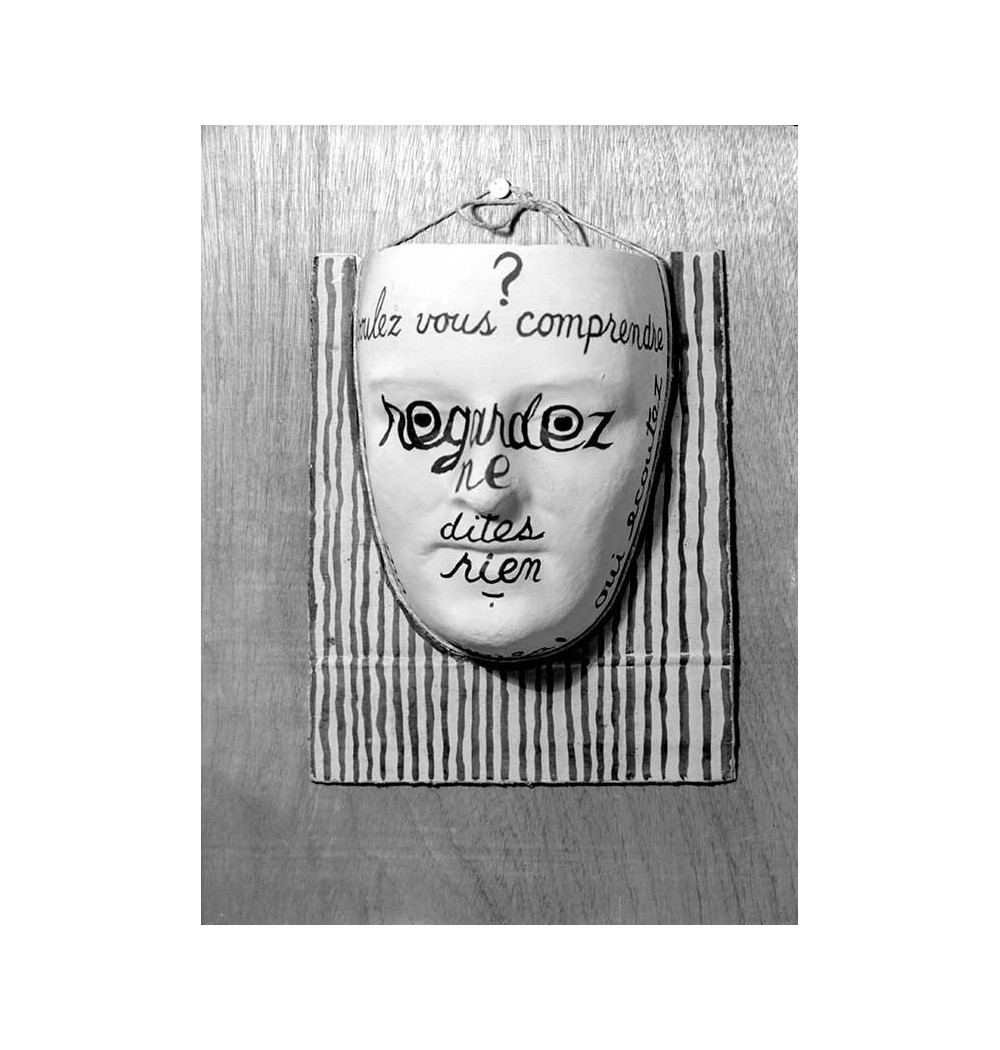 Mask with written sentences : Do you want to understand? Look, don't say anything.
