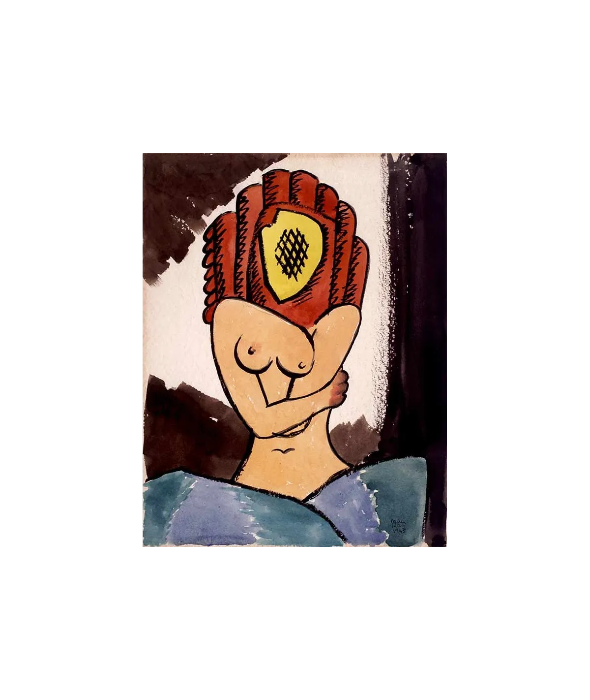 watercolor on paper - naked woman arms crossed