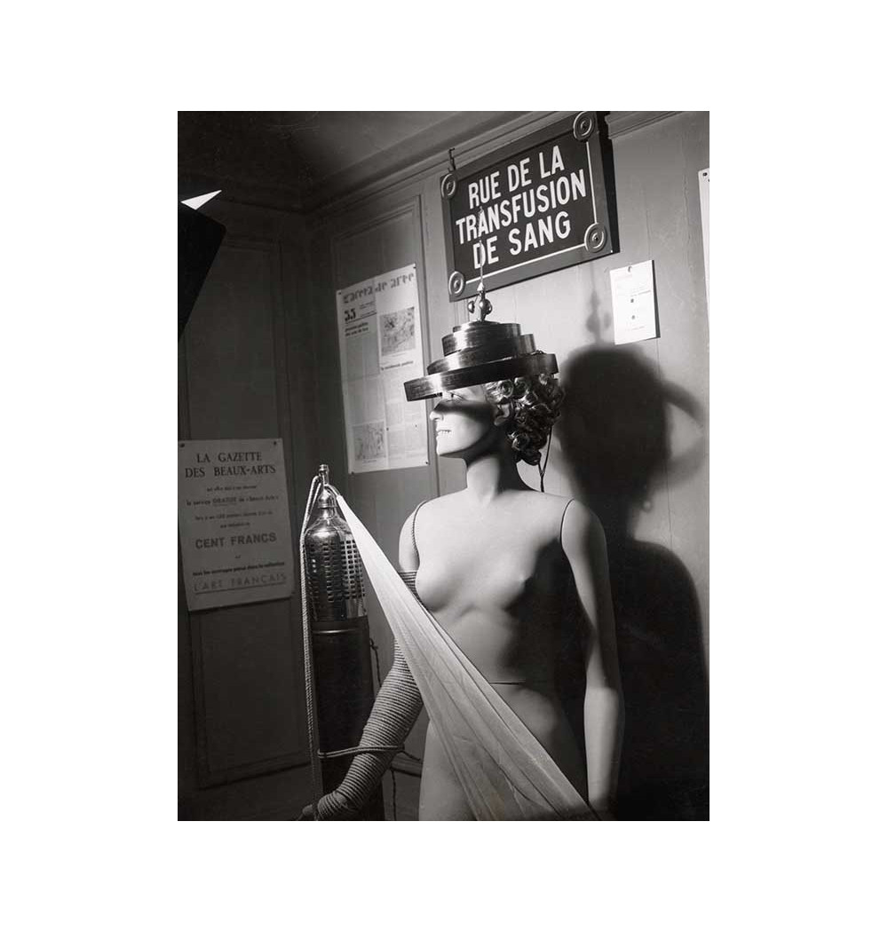 wooden figure by Oscar Dominguez for the international surrealism exhibition, Rue de la Transfusion Sanguine
