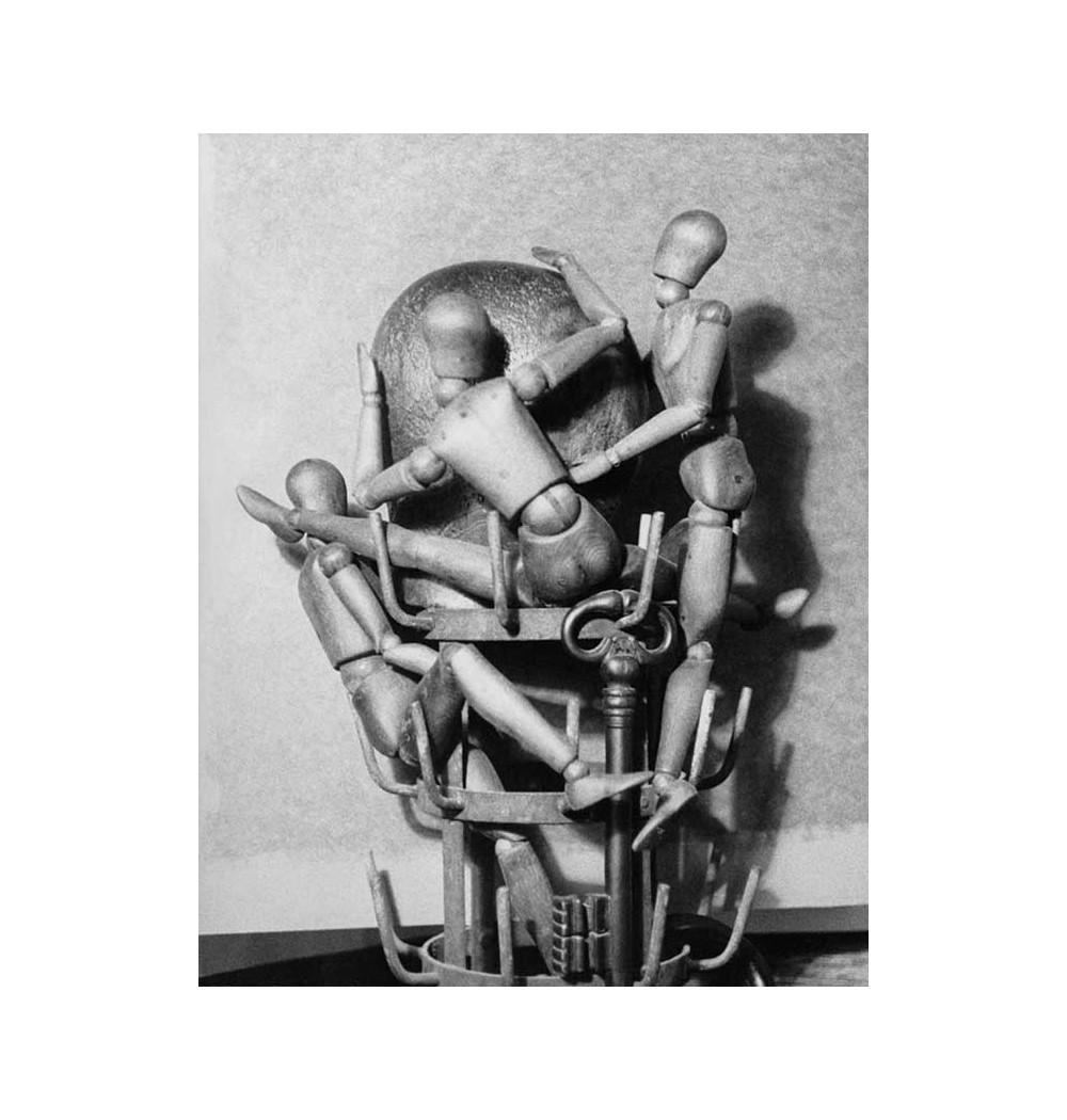 Trivbute to Sade: wooden figures on botthes support use by Marcel Duchamp as a ready-made