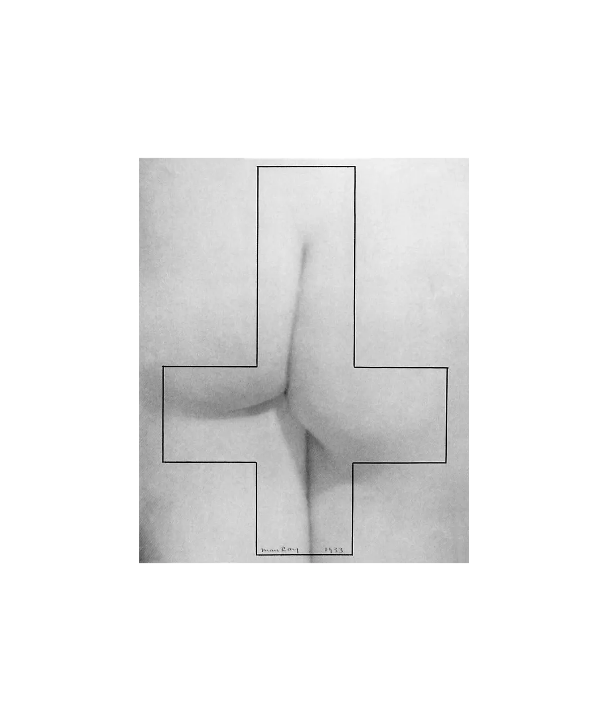 photo of female bottom with drawing of inverted cross