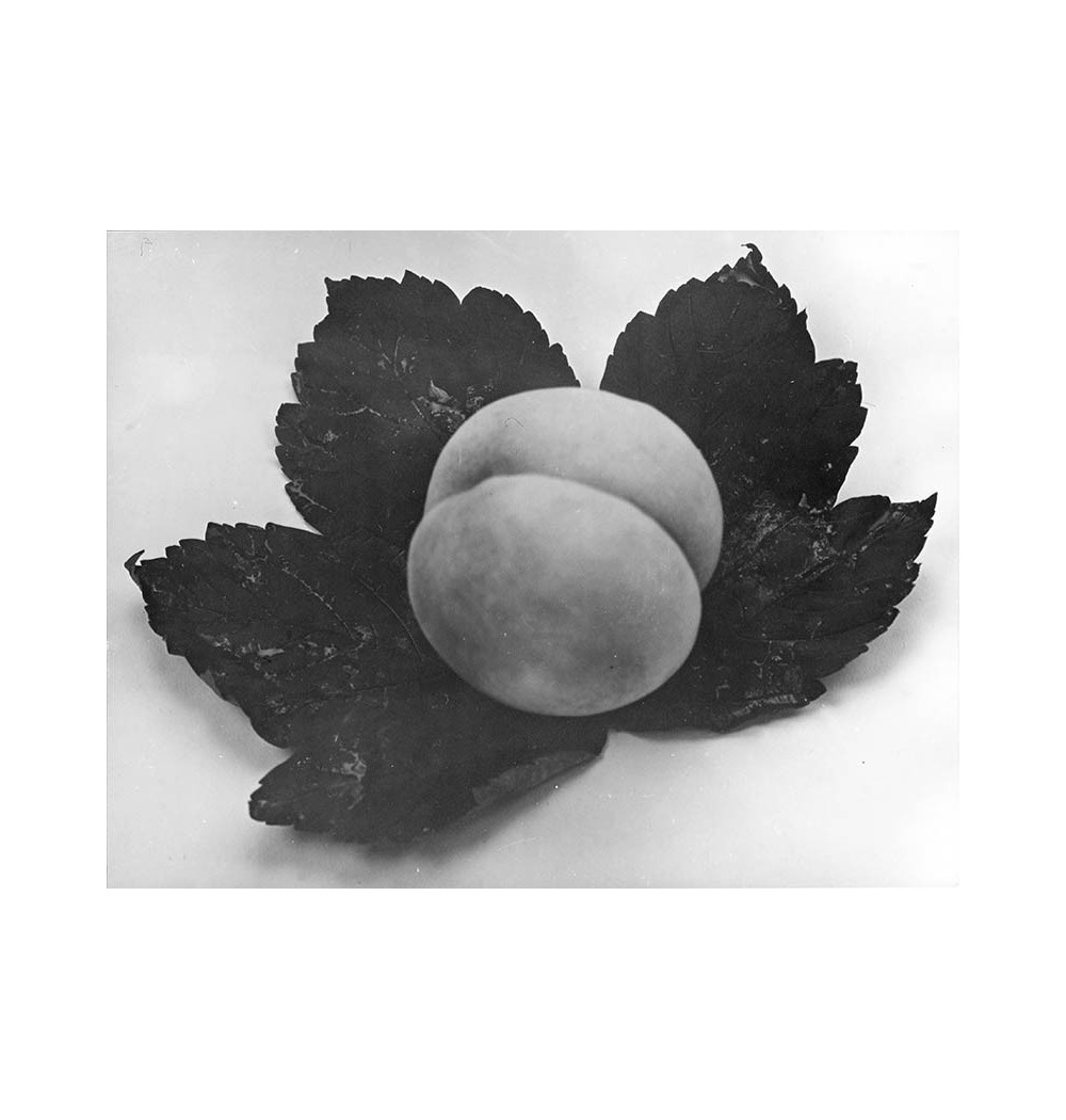 A peach placed on a vine leaf, published in Photographs by Man Ray 1920-Paris-1934, p. 24A peach placed on a vine leafpublished in Photographs by Man Ray 1920-Paris-1934, p. 24