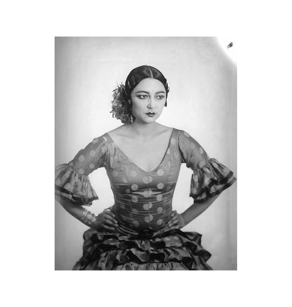 portrait woman front hands on hips polka dot dress bust shot