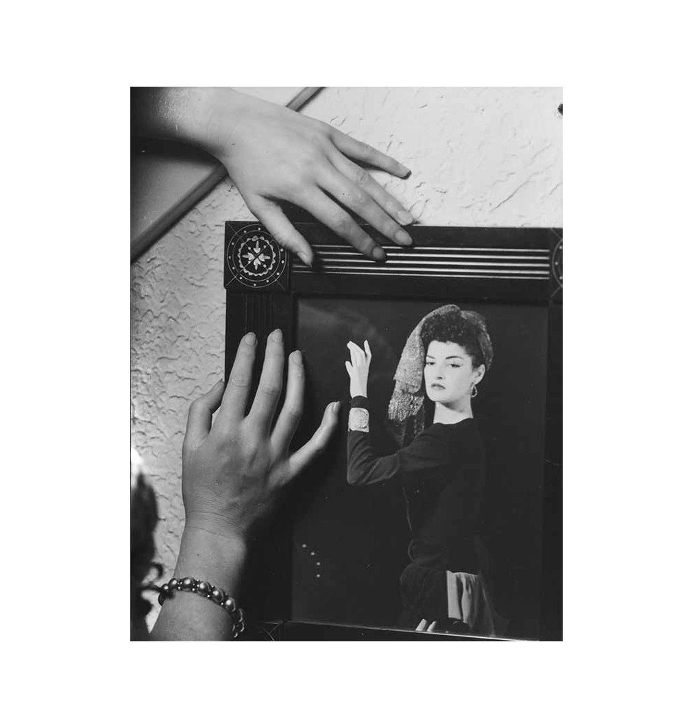 Juliet's hands on a frame a photo of Juliet as a gypsy