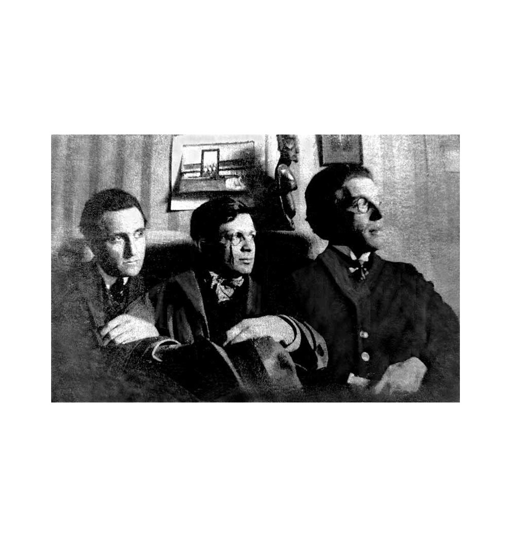 Jacques Rigaut, Tristan Tzara, André Breton sitting on a sofa