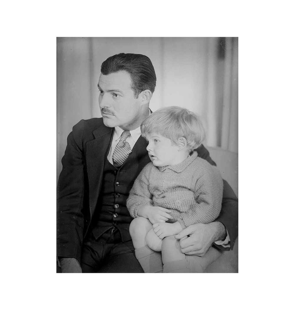 Ernest Hemingway his son Bumby in his arms profile suit tie