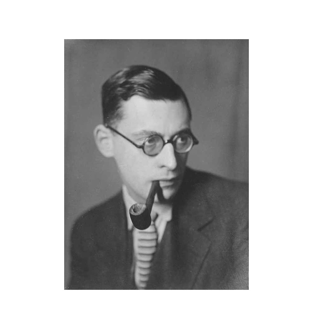 three quarter face with pipe and glasses striped tie - writer