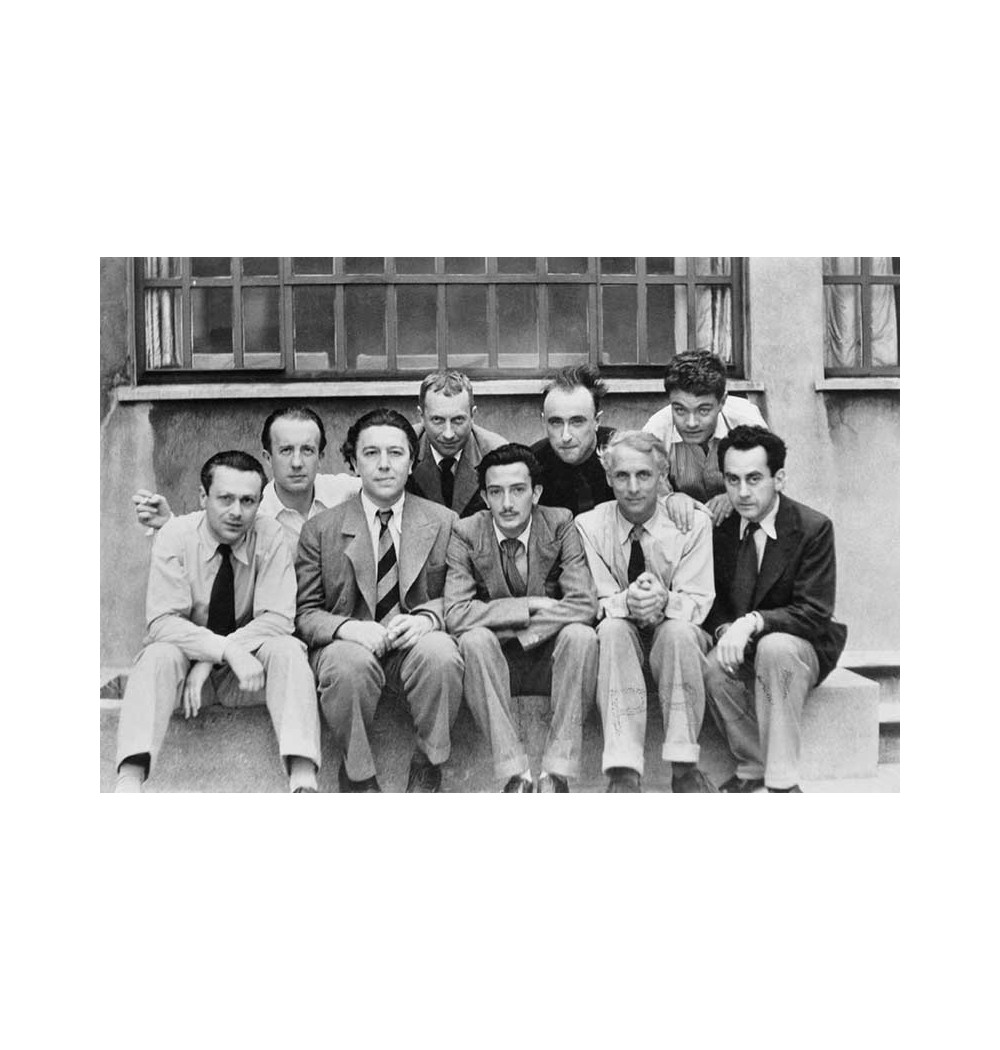 Seat down group from left to right: Tristan Tzara, Paul Eluard, André Breton, Yves Tanguy, Salvador Dali, Jean Arp, Max Ernst, René Crevel et Man Ray
