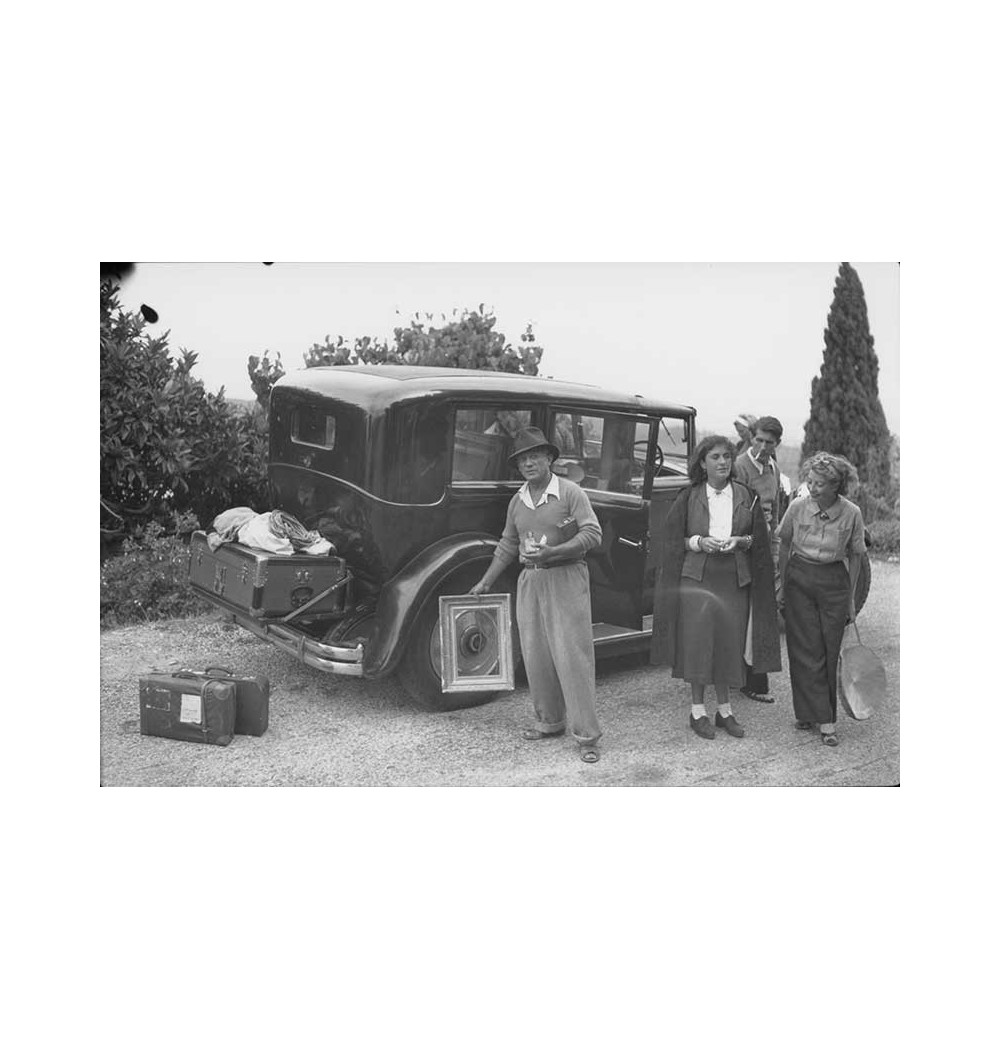 Pablo Picasso, Dora Maar, Lee Miller, Roland Penrose with car Hispano Suiza