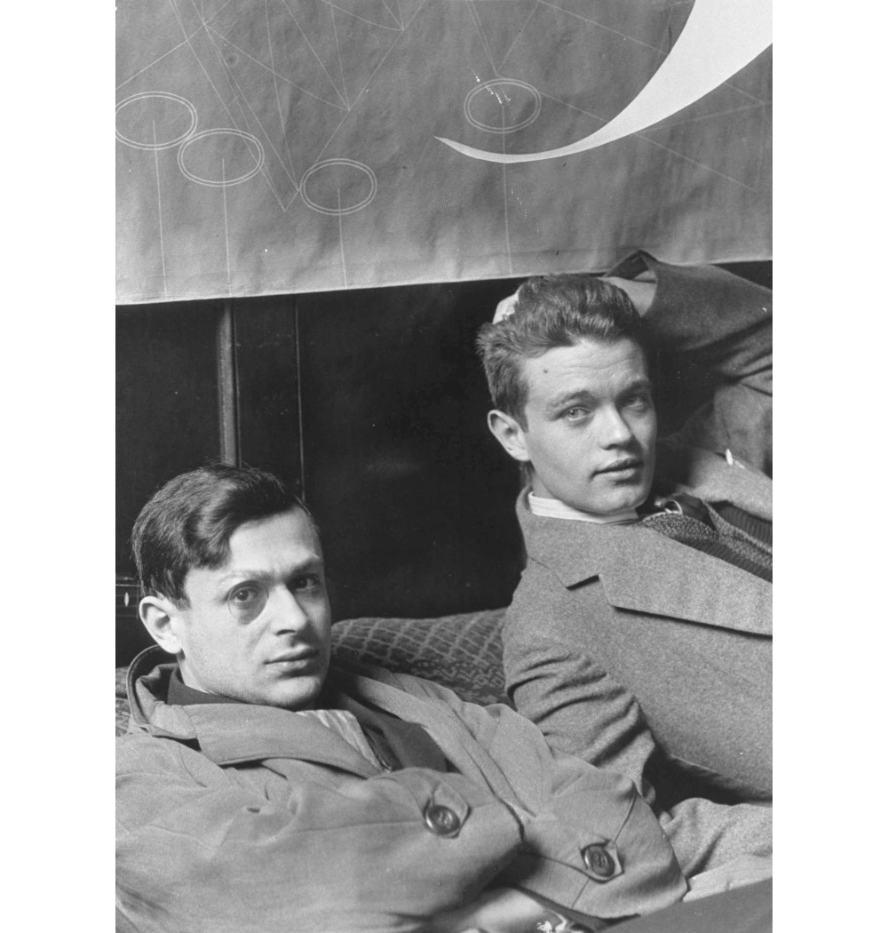 Tristan Tzara and Rene Crevel hand on head tie