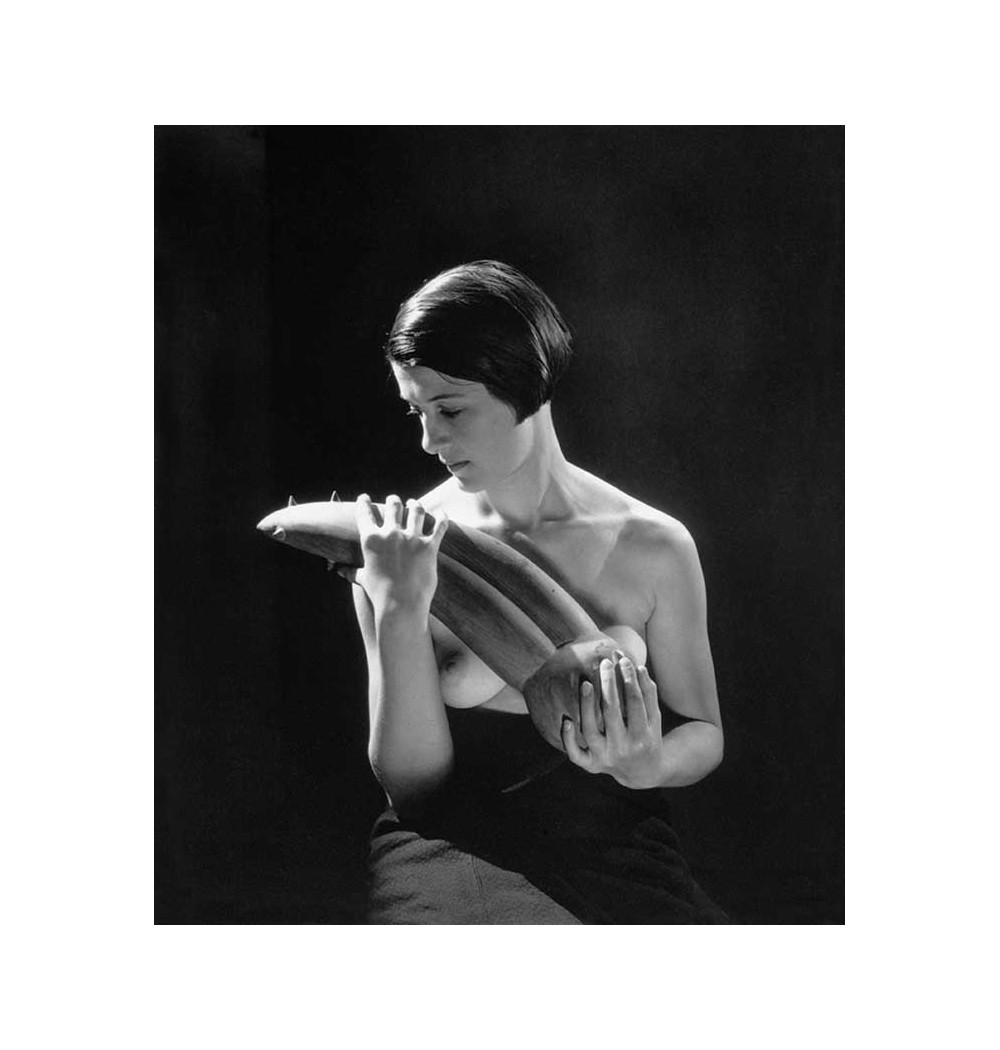 Model with a sculpture by Giacometti "Objet désagréable" Unpleasant object