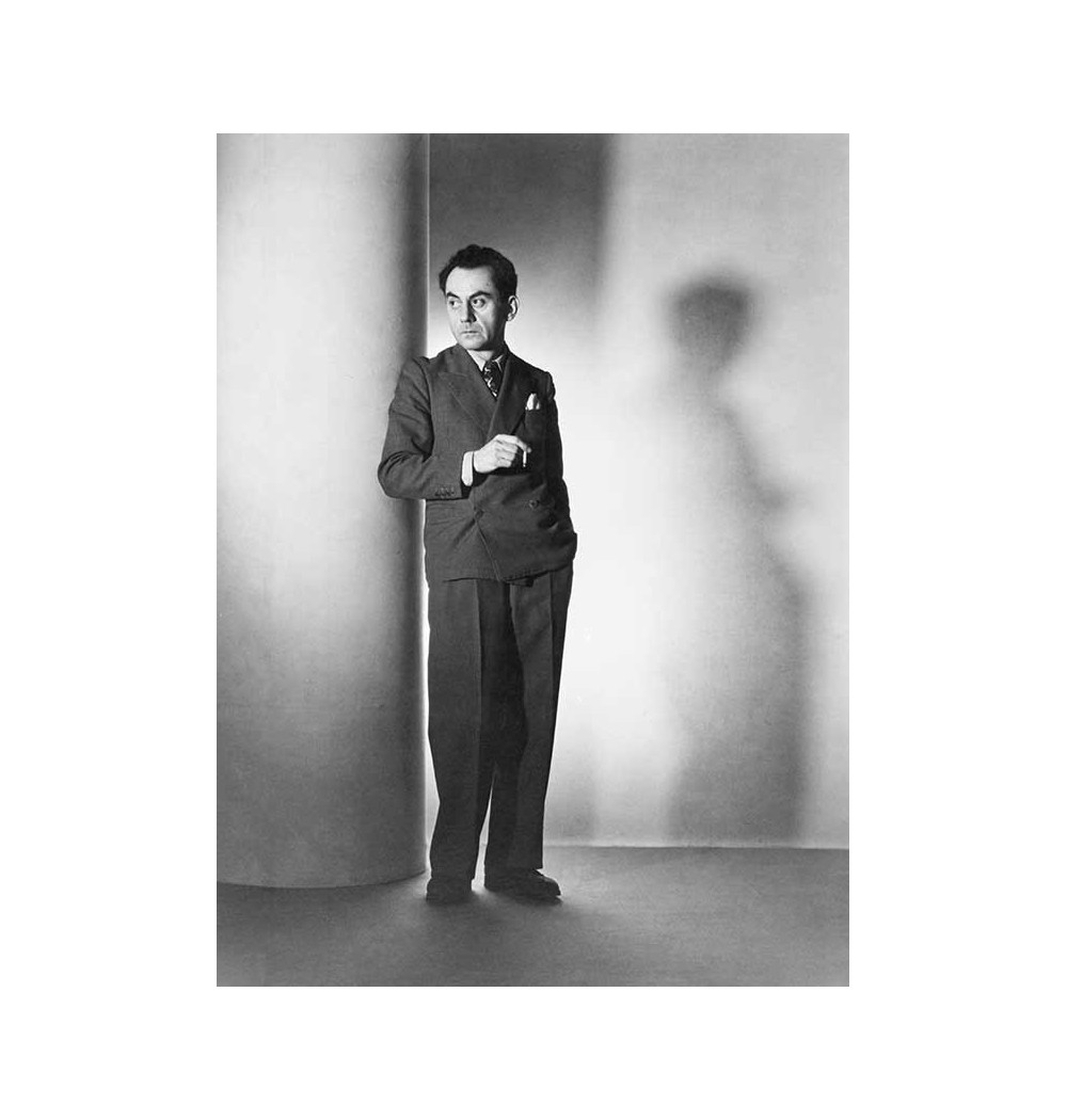 full-length selfportrait of Man Ray leaning against a column in smart suit shadow cigarette in hand illustration Man Ray fashion
