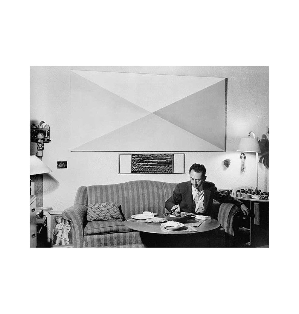 man sitting in armchair under painting in workshop Hollywood 1245 Vine Street