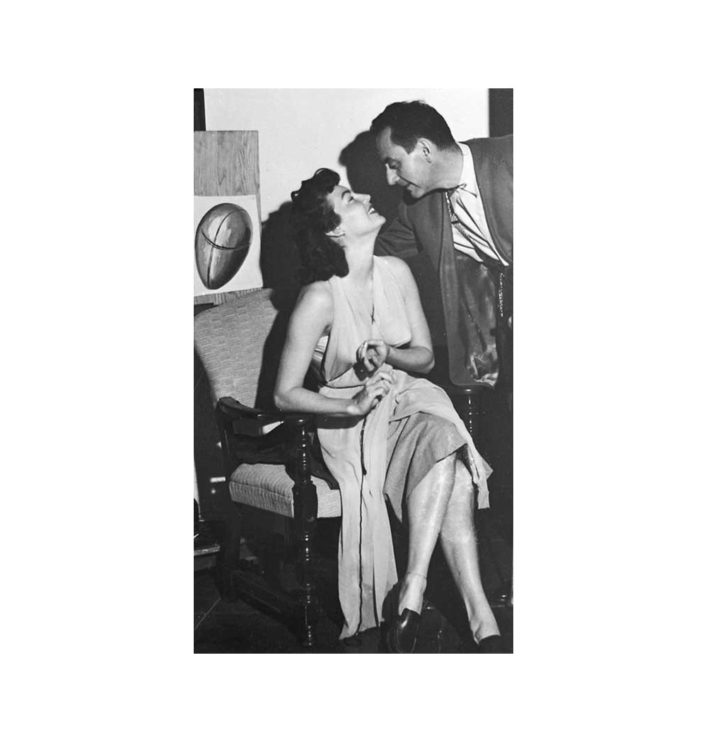 woman sitting looking at Man Ray, man leaning towards her