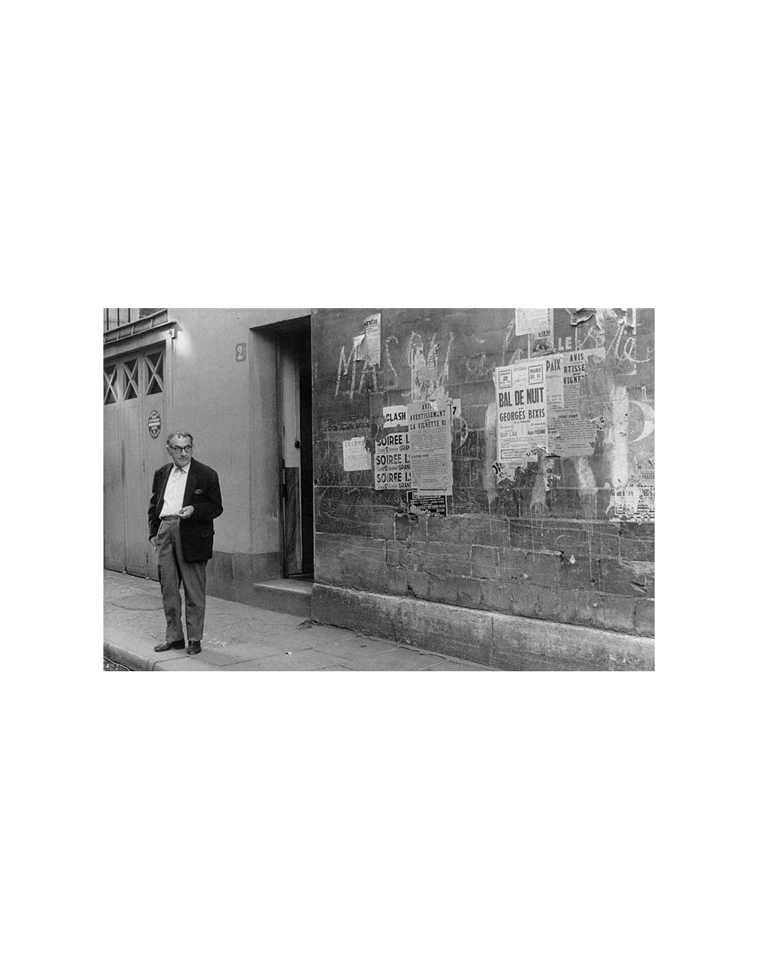 man in Ferou street at the door of his workshop outside posters on the wall, 2 bis, rue Férou, 75006 Paris