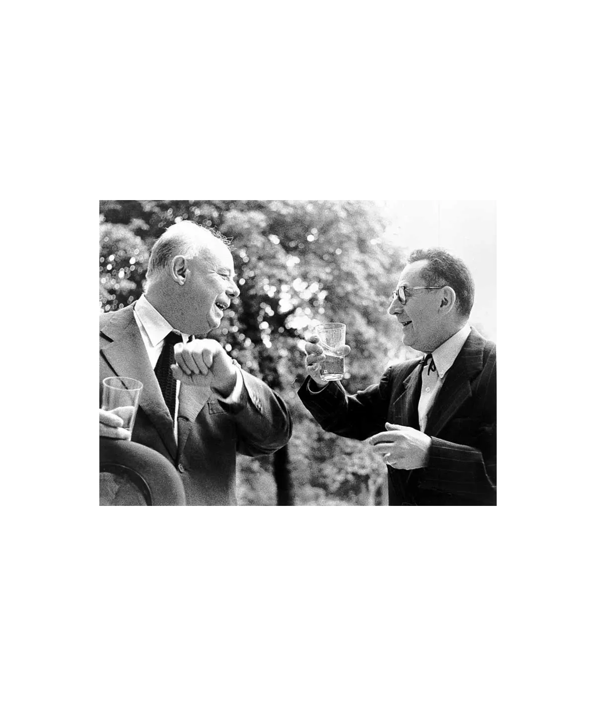 Jean Renoir and Man Ray, in the middle of lively discussion and laughing, glasses in hand