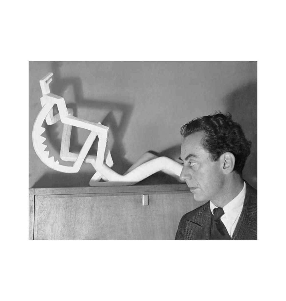 Man Ray, profile to a Giacometti sculpture “Femme angoissée dans une chambre la nuit”