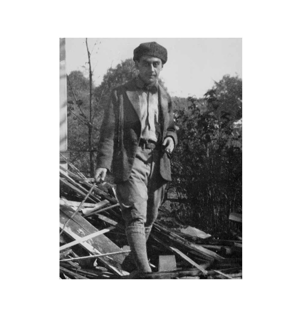 portrait young man beret forest log wood in Rigdefield, New Jersey