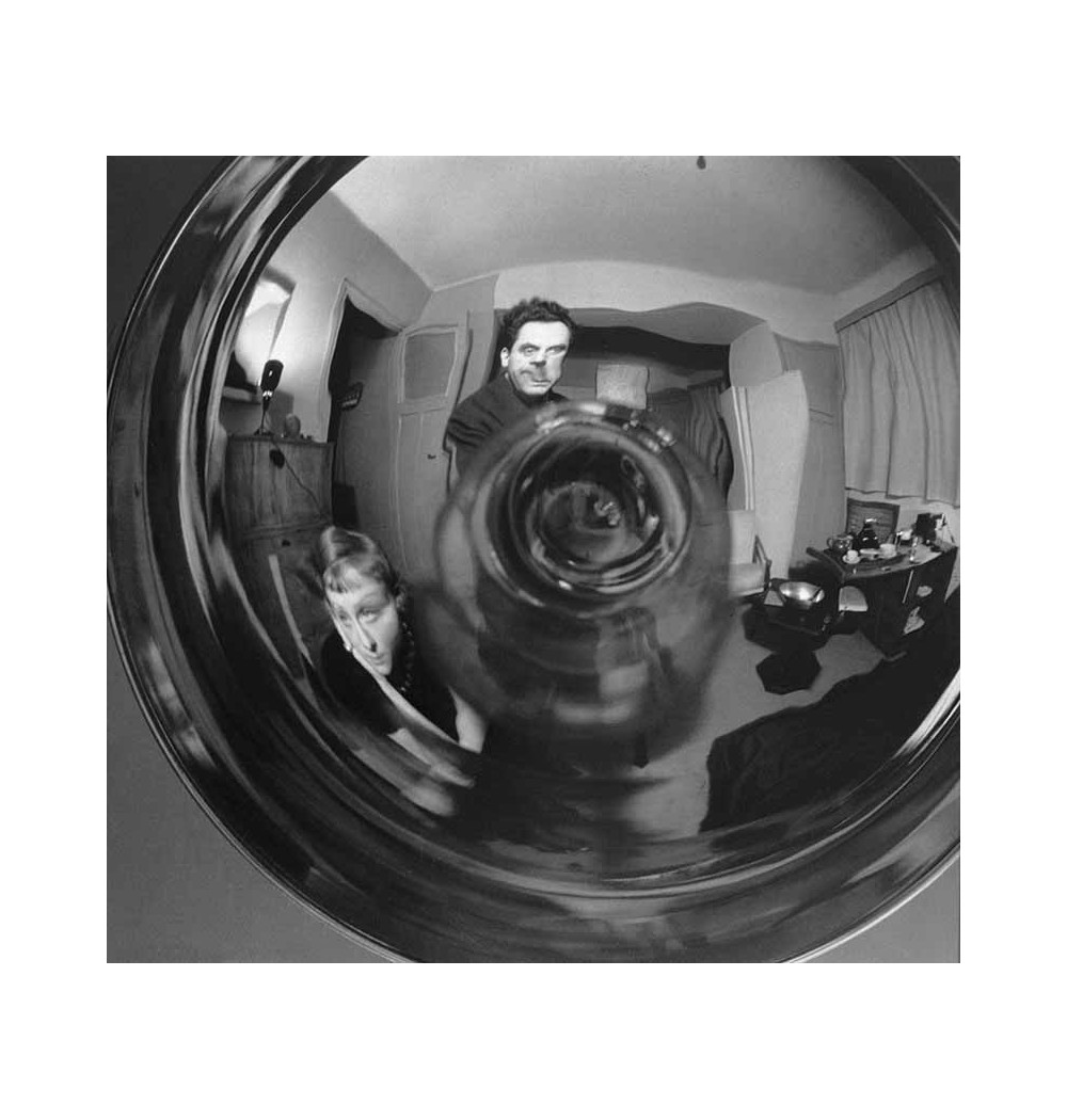 optical play, reflection, self-portrait, studio view with Man Ray and unidentified woman