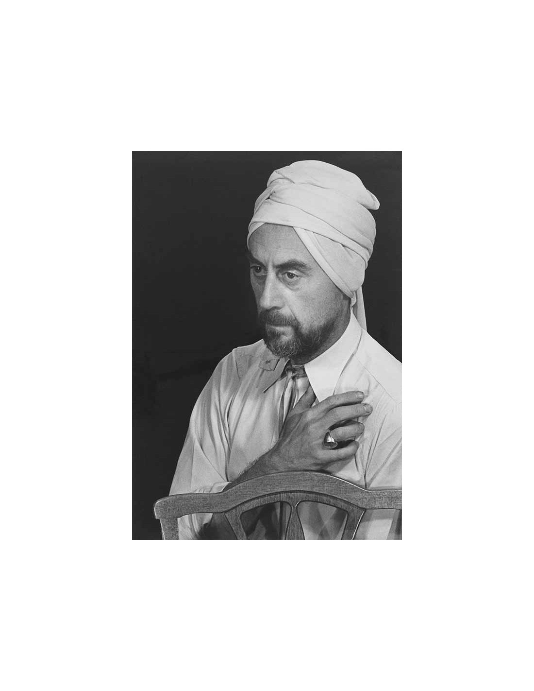 three-quaters portrait man hand on chest turban beard