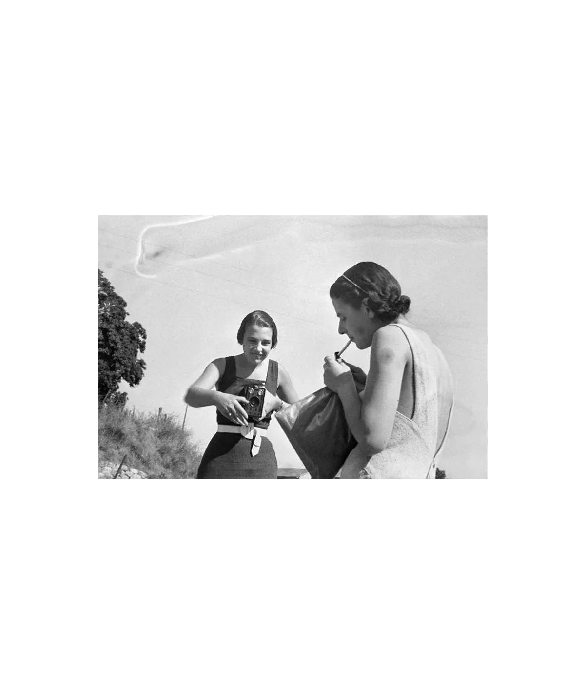 Cecile Eluard photographing Dora Maar, in a swimsuit on the beach