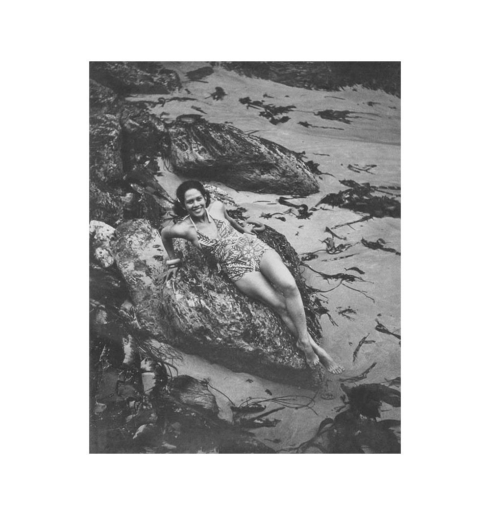Adrienne Fidelin in a swimsuit, in the rocks