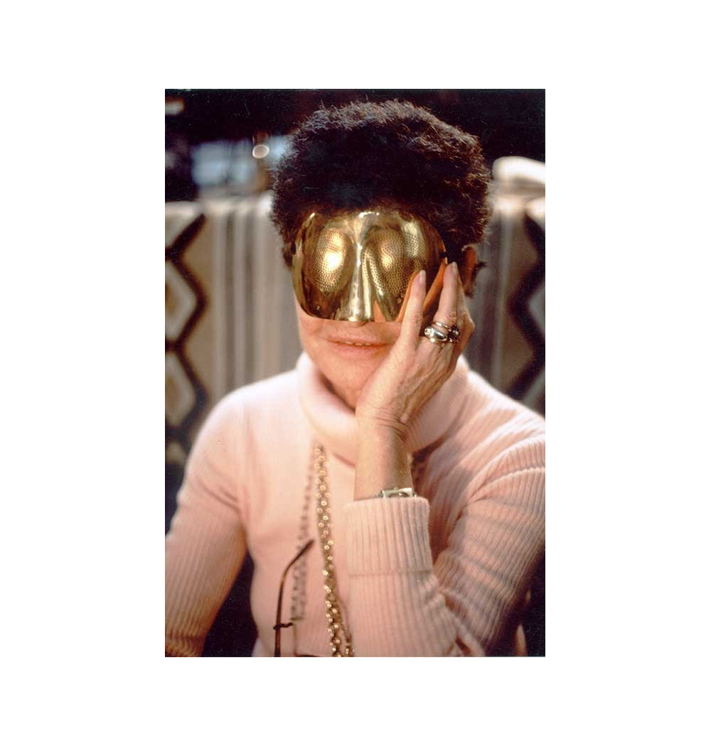 woman with mask object-jewel created by Man Ray "Optic-Topic" - color photograph