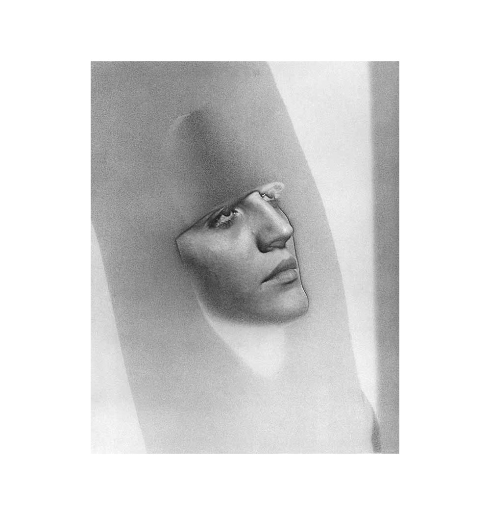 woman's face, hood, eyes raised to the sky - solarization
