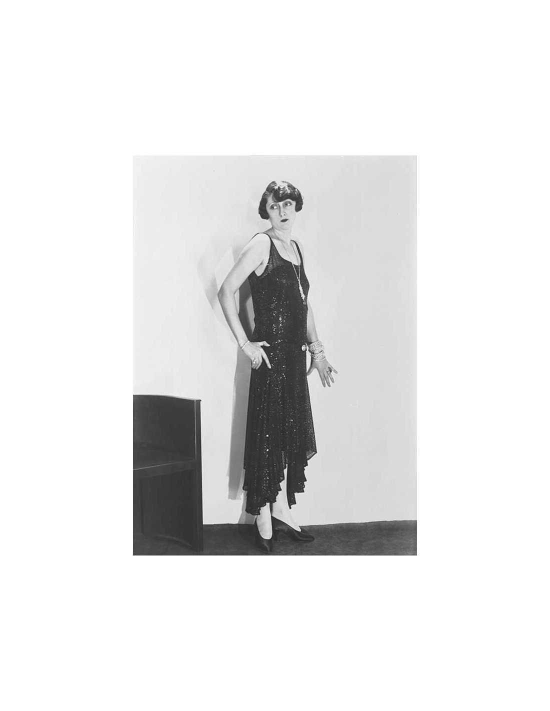 Mode Peggy Guggenheim Photographie HD (300 DPI Tiff) 1924 - ref : 1350 120,00 € Peggy Guggenheim dans une robe de Paul Poiret, modèle en pied de profil avec un fume-cigarettes Ajouter au panier