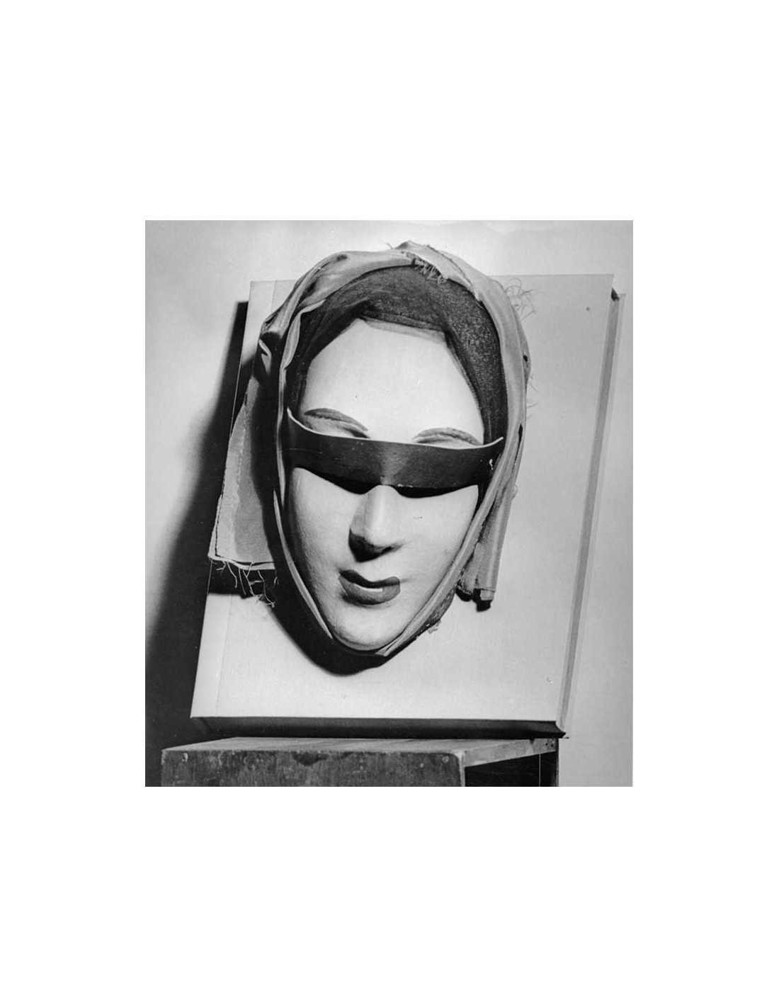 Objets Reliure "Aline et Valcour" Photographie HD (300 DPI Tiff) 1953 - ref : 503/14 120,00 € masque de carton avec yeux bandés de velours noir, collé sur le livre "Aline et Valcour" de D.A.F. de Sade Ajouter au panier