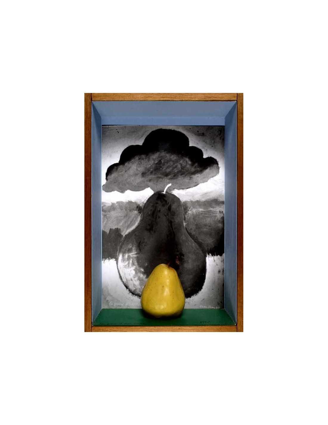 objet - boite peinte contenant une poire synthétique devant une photographie noir et blanc tu tableau La Poire