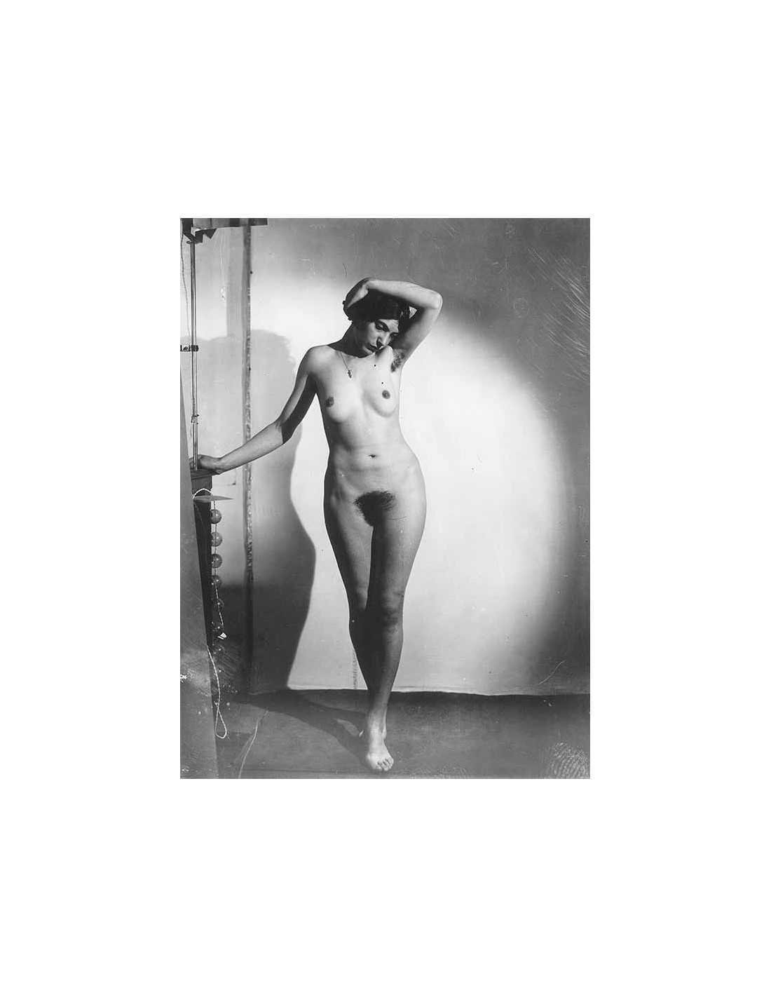 femme nue en pied main derrière la tête pendentif autour du cou
