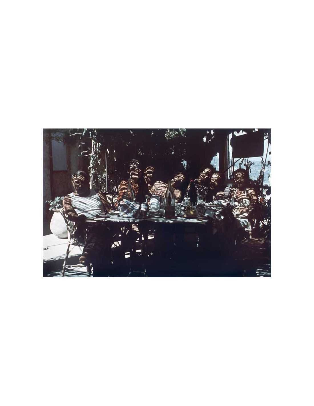Vacances à Mougins (hôtel Vaste Horizon), groupe sous les canisses avec Pablo Picasso, Dora Maar, Man Ray, Cécile Eluard, Adrienne Fidelin, Paul et Nusch Eluard