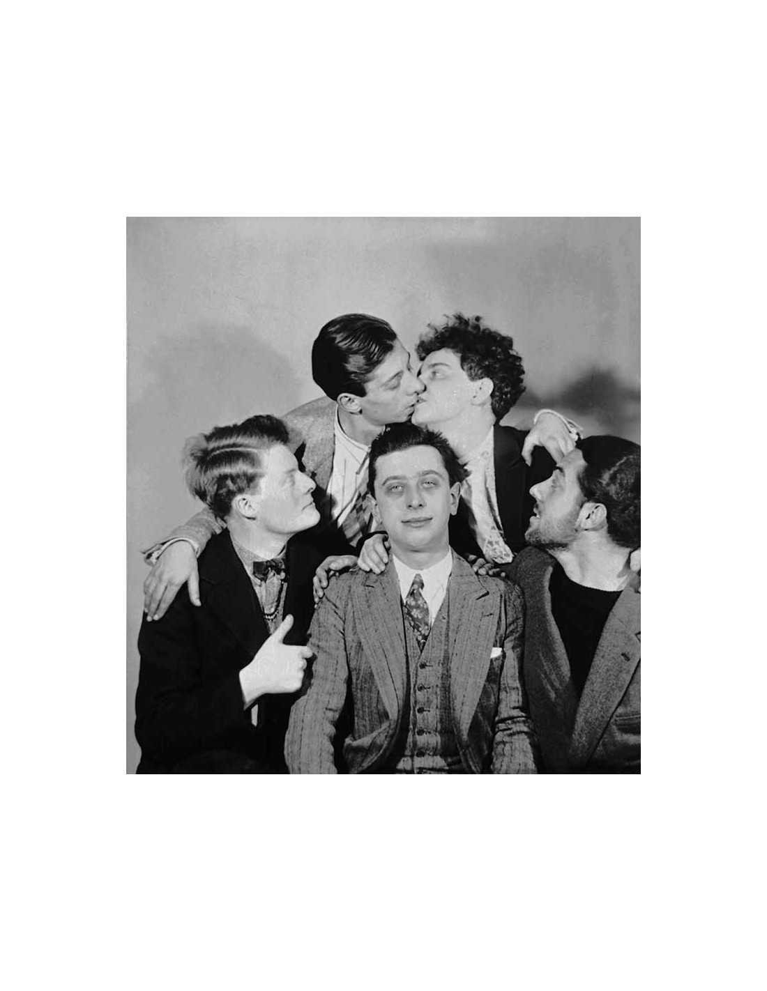 Robert Desnos au centre et André la Rivière (à gauche), André Lasserre; Georges Malkine embrassant Yvette Ledoux