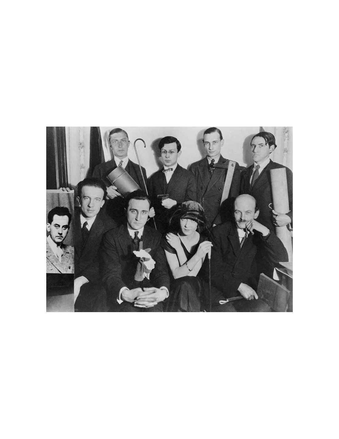 de gauche à droite : Paul Chadourne, Philippe Soupault, Serge Chardoune, Man Ray, Paul Eluard, Jacques Rigaut, Mick Soupault, Georges Ribemont-Dessaignes