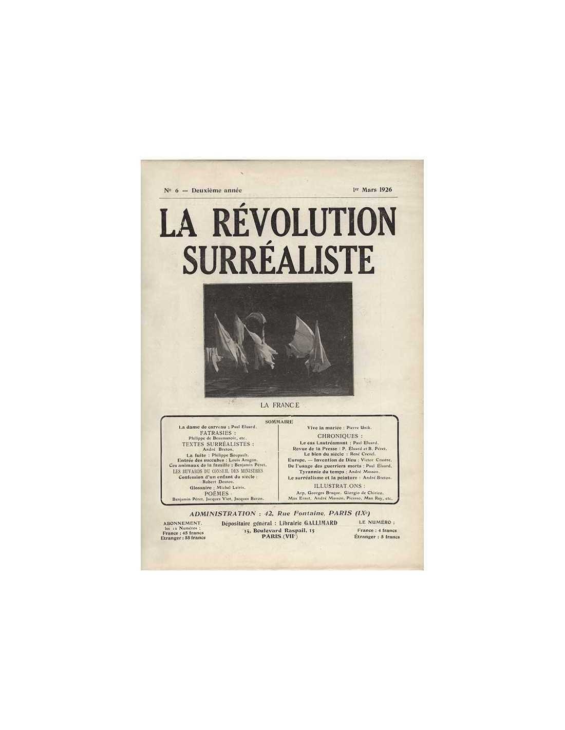 Publications Dadaïstes Surréalistes La Révolution Surréaliste n°1 Photographie HD (300 DPI Tiff) 1924 - ref : 642/06 120,00 € couverture de "La Révolution Surréaliste", n° 1 - 1er décembre 1924 Ajouter au panier
